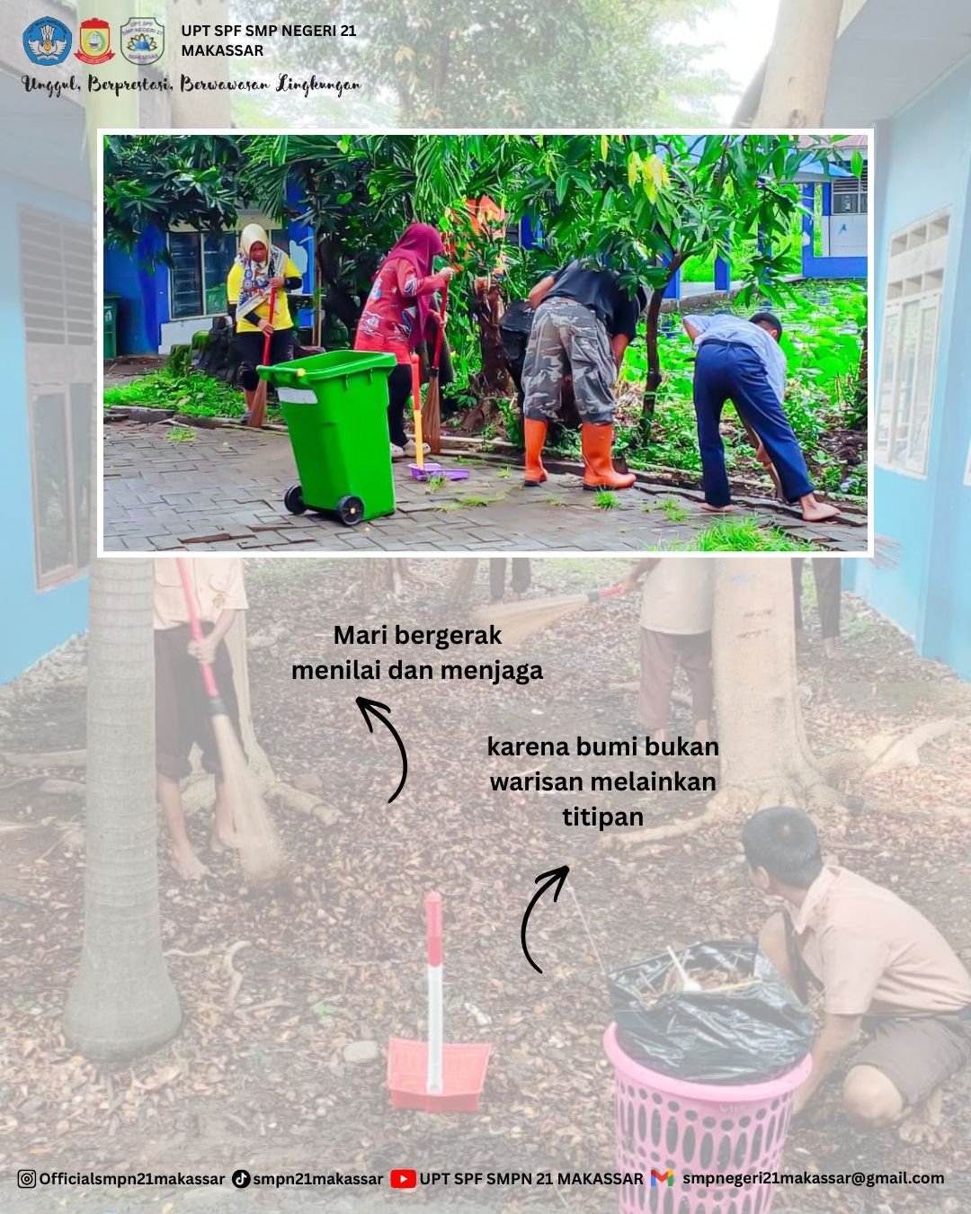 Peringatan Hari Peduli Sampah Nasional di SMPN 21 Makassar pun berlangsung penuh semangat dan menjadi bagian dari upaya sekolah dalam menciptakan lingkungan pendidikan yang bersih, sehat, dan nyaman.