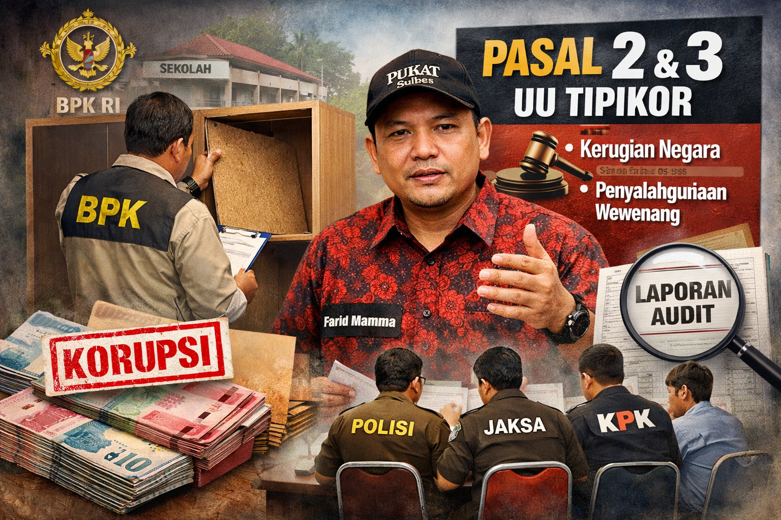 Pusat Kajian Anti Korupsi (PUKAT) Sulawesi Selatan menegaskan bahwa hasil audit BPK menunjukkan indikasi kuat terpenuhinya unsur Pasal 2 dan Pasal 3 Undang-Undang Nomor 31 Tahun 1999 juncto Undang-Undang Nomor 20 Tahun 2001 tentang Pemberantasan Tindak Pidana Korupsi (UU Tipikor).