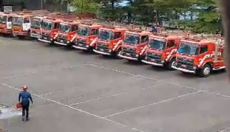 Informasi tersebut disampaikan melalui pengeras suara di kantor Damkarmat, ditandai dengan bunyi sirene mobil pemadam kebakaran.