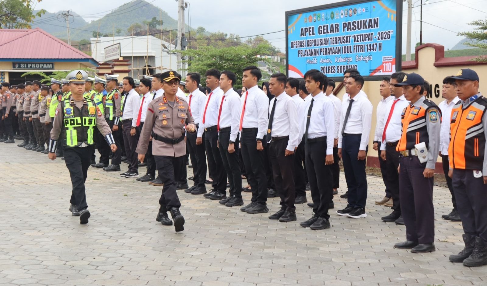 “Apel gelar pasukan ini merupakan bentuk kesiapan kita bersama dalam mengamankan perayaan Idul Fitri. Polri bersama TNI dan seluruh stakeholder akan bersinergi untuk memberikan rasa aman dan nyaman kepada masyarakat, khususnya bagi para pemudik yang melintasi wilayah Kabupaten Soppeng,” ujar Kapolres.